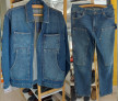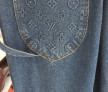 Compleu jachetă+blugi din denim albastru mijlociu, spălat fără efort, oferă o siluetă de îmbrăcăminte de lucru simplă, împodobită cu buzunare în relief cu Monogram. Această piesă se împerechează cu pantaloni de dulgher asortați pentru un aspect la modă, dar se amestecă ușor cu orice ansamblu.