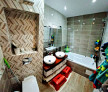 •Baia are toaletă incastrata + raft, 2 chiuvete funcționale, cadă și calorifer tip uscător.