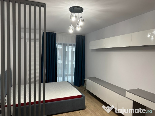 Proprietar - comision 0, garsonieră modernă, complet mobilată și utilată, liberă, situată în ansamblul rezidențial Moghioros Park Residence, etaj 6/12, decomandată, cel mai spațios tip de garsonieră din complex (48 mp), balcon mare (10 mp), bloc finalizat în 2023, zona liniștită,, centrală termică, aer condiționat Gree, electrocasnice Beko (combină frigorifică, cuptor electric, plită pe gaz, hotă electrică, mașină de spălat), pat king size si canapea extensibilă IKEA, 2 lifturi KONE.