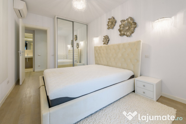 Apartamentul este situat la etajul 3 si beneficiaza de finisaje de top si mobilier de lux, fiind complet utilat, de cea mai buna calitate. Mobilierul si electrocasnicele, un loc de parcare in garajul subteran si o boxa, sunt incluse in pretul chiriei.