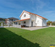 Structura este de caramida Porotherm, suprafata utila este de 100 mp, iar terenul aferent in suprafata de 486 mp, este imprejmuit cu zid de beton spre livada si decorat cu fier forjat spre strada. In gradina avem un frumos covor de gazon, o terasa cu mobilier rustic, masa si banci din lemn masiv, iar in jurul casei avem trotuar/alee si platforma din beton amprentat.