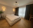 Proprietatea beneficiaza de terasa acoperita, pod cu scara glisanta si se vinde partial mobilata, cu mobilier realizat la comanda de Mobel Sibiu in dormitor, dressing, living cu bucatarie, hol si cele doua bai. Canapeaua si patul sunt din stofa boucle de la Mafurniture, alese pentru confort si design modern.