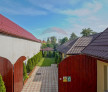 -Restul curții este amenajat cu pomi fructiferi și arbuști ornamentali, oferind un cadru verde și intim