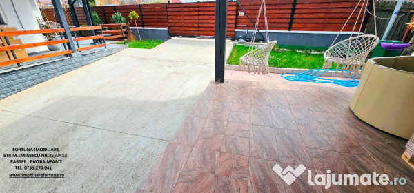 Curtea este frumos amenajata cu alei betonate și plante ornamentale, fiind organizată cu grijă într-o zonă cu 4 locuri de parcare ( la care există acces prin intermediul unei porți cu sistem automat de deschidere/închidere) și zona verde pentru relaxare.