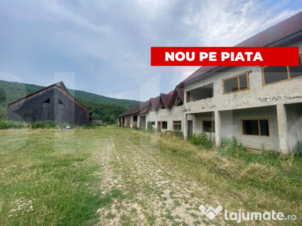 Dimensiunea terenului, structura solidă a clădirilor și poziționarea într-un cadru natural deosebit, la marginea pădurii, transformă această proprietate într-o oportunitate rară de investiție pentru cei care își doresc să creeze un proiect vizionar într-o zonă cu potențial turistic în creștere.
