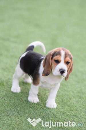Pui de beagle (7 saptamani) proveniti din parinti cu pedigree,tip A (talie mica - mama tricolor - tatal tricolor),perfect sanatosi, deparazitati,vaccinați conform varstei si însoțiți de carnet de sanatate, pregătiți sa părăsească cuibul si sa.si găsească un stăpân iubitor! Locuim în Pitești +40742498583
