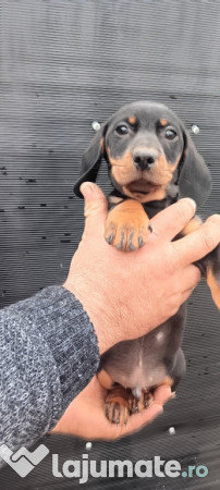Catel rasa teckel cu carnețel si schema de vaccinare , 2 luni maninca bobite si hrana umeda.
