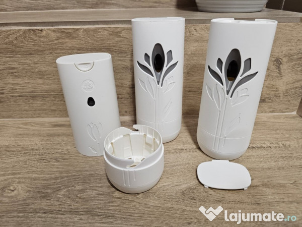 Acest dispozitiv automat de pulverizare Air Wick este un accesoriu practic și elegant pentru casa ta. Designul minimalist și florile stilizate îi conferă un aspect modern și atractiv. Poate fi utilizat pentru a împrospăta aerul și a crea o atmosferă plăcută în orice încăpere.