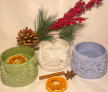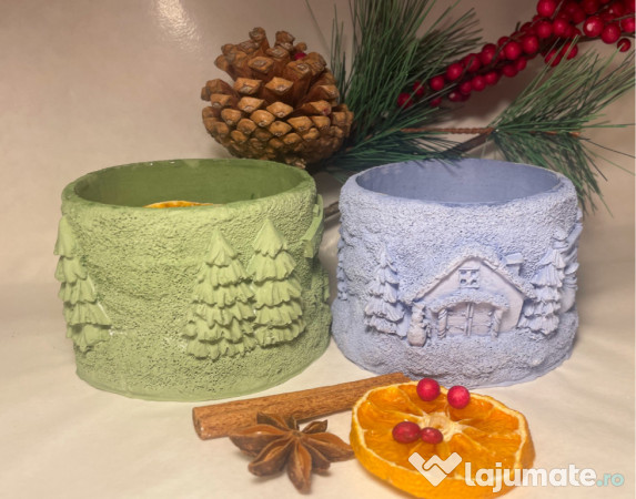 Recipiente din gips pentru lumânări, sigilate pe interior. Disponibile în culorile din poze, daca se dorește se pot pregăti și alte culori dar prețul va fi mai mare.