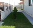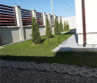 Curte - gradina amenajata cu gazon , pomi fructiferi, tuia ornamentali
