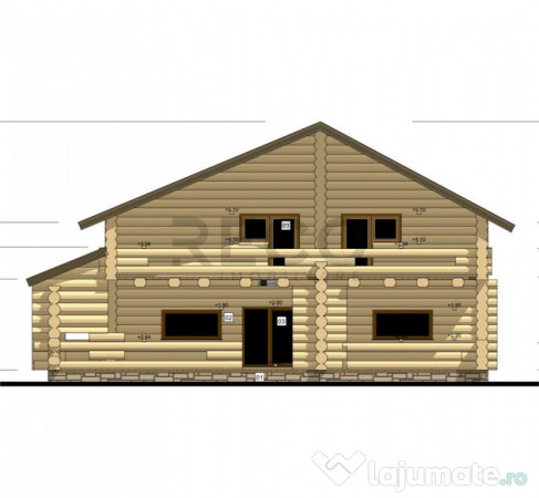 #ILS83 Constructie premium din busteni masivi de molid-selectionati riguros, cu diametrul intre 30 si 40 cm pentru rezistenta si estetica autentica. Imobilul are suprafata utila 320 mp si este structurat pe doua nivele , parter si mansarda. Parterul este compartimentat astfel: living, bucatarie, 2 dormitoare, baie, hol de acces cu scara, iar mansarda se poate compatimenta dupa bunul plac. Casa este prevazuta cu izolatie fonica interioara si instalatie electrica gata de conectare.