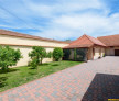 - Corpul mare de casa, in suprafata de peste 120 mp, unde regasim doua holuri, doua dormitoare, din care unul cu dressing si unul cu baie proprie, camera de zi, bucatarie si baie.