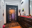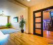Accesul intre demisol si mansarda se face pe o scara ampla si eleganta, imbracata in detalii de fier forjat si iluminata de un candelabru din cristal.