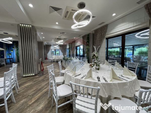 Restaurant cu tradiție în zonă, împreună cu două saloane moderne de evenimente și o terasă spectaculoasă. Toate spațiile sunt complet amenajate, cu design contemporan, finisaje impecabile și echipamente profesionale de ultimă generație.