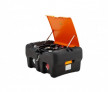 din polietilena de inalta rezistenta, echipate cu:maner integrat pentru pistol; supapa de aerisire integrata; spatii pentru ridicare cu stivuitorul integrate; pompa autoamorsata electrica 12V Ex cu debit 25 l/min cu pistol automat cu 2.7 m furtun alimentare ; cablu cu clesti de 5 m; pistolet automat; capac inclus.