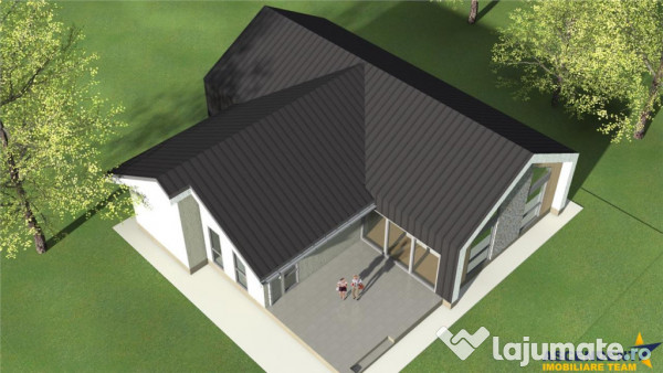 Aceasta casa moderna si eleganta se desfasoara armonios pe un teren generos de 518 mp, oferind spatii luminoase si perfect compartimentate.