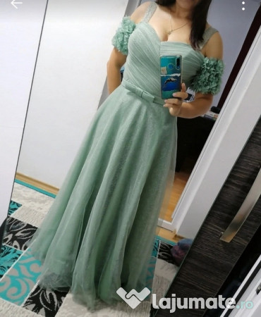Rochie purtată doar 2 ore, culoare deosebită, foarte comodă. Mărimea 38, potrivită pentru persoanele cu bust mai mare.