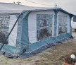 Cort mare cu prindereîn5 puncte, pe toată lungimea rulotei cu anexa dormitor, covor cort , toate accesoriile, cuie, cabluri, fusta, Cortul se poate face terasă.