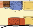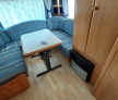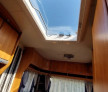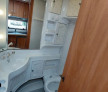 In dreapta mijloc este bucataria cu aragazul si chiuveta din inox , frigider DOMETIC model nou functional la 12v,220v, si gaz cu congelator mare . Iluminat integral la 12v . In stinga mijloc este baia cu wc fix cu golire prin exterior chiuveta si cadita de dus si se poate monta si DUS . Trapa de aerisire transparenta panoramica cu deschidere la 45 grade , incalzitor Truma cu ventilatie Trumavent rece-cald functional pe gaz .