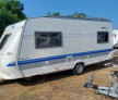 Rulota HOBBY 495UL cu MOVER, acumulator si panou solar , iluminat cu LED-uri . Fabricatie in 2005 , prima inmatriculare in Olanda 2010 . O marca germana premium , cu 2 paturi fixe si coltar . Lungimea totala de 6.90 m si lungimea interioara de 5m . Masa proprie 1020 kg , masa maxima 1350 kg . La urcare in partea stinga se afla un coltar mare care se transforma in pat pentru 2-3 persoane .
