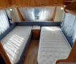 Iar in partea din fata are un dormitor cu 2 paturi fixe de cite o persoana si o noptiera.