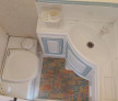 In mijloc se afla baia cu wc ecologic fix cu golire prin exterior , chiuveta , cadita de dus, opus baii se afla bucătăria cu chiuvetă si aragaz , frigider cu congelator functional 12v,220v,si gaz, sistem de încălzire Truma . Plase de ţînţari, perdele , jaluzele, draperii la toate geamurile ,toate geamurile se pot deschide , sistem de iluminare 12v .