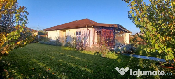 Locuința se află în Săbăreni, la aproximativ 11 km de Centura vestică a Bucureștiului si la 5 km de A0 si de A1, cu acces prin Chitila sau Chiajna. Imobilul a fost construit în 2018, are structura de rezistență din beton armat, zidărie din caramidă, cu placa de beton și peste parter. Casa a fost mai întâi tencuită atât la interior cât si la exterior si după aceea izolată termic cu polistiren de 100 mm cu EPS 80, peste care s-a aplicat tencuiala decorativă de exterior. Si podul a fost izolat termic cu celuloză. Acesta este înalt, are 2,20 m la coamă si are o fereastră tip Velux. Camerele sunt mari, luminoase: living 27 mp, dormitoare de 18 mp si 14 mp, bucătărie 15 mp, hol 13 mp, 2 bai, cămară, cameră tehnică, pivniță si terasă de 21 mp. Accesul pe terasă se face atât din bucătărie cât si din living. Aceasta este acoperită si închisă cu o folie specială, ușor detașabilă la nevoie, în funcție de starea vremii. Ferestrele sunt Salamander cu geamuri tripan, incălzirea cu gaze, centrală termică si calorifere. Este finisată complet: gresie, faianță parchet, uși interioare, obiecte sanitare. Bucătărie mobilată si utilată. Curtea are 575 mp si este amenajată: pomi fructiferi, arbori si arbusti ornamentali, flori, gazon, instalatie automatizată pentru irigat. In plus imobilul are si un carport pentru două masini. Vă invit s-o vedeți, chiar avem ce! Aproape totul este pus la punct! Este caldă, primitoare, e ,,acasă”!