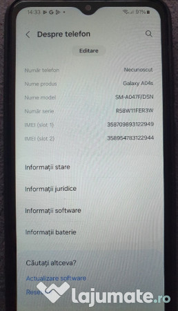 De vânzare telefon Samsung A04s, 32 GB, 3 GB RAM, telefonul arată și funcționează perfect, se vinde fără accesorii.