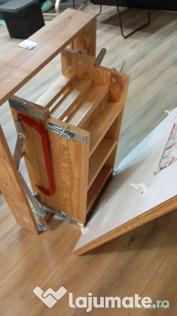 Scară de acces pod sau mansarda, culoare alba, Fakro LWK Komfort, realizată din lemn de calitate, cu sistem de deschidere și închidere, sistem complet ca in magazin, nefolosita, 4 segmente a cate 3 trepte fiecare, cu instructiuni de montaj, 2 garnituri. Dimensiunea golului de acces 70/94cm, Hmax. camera 280cm.