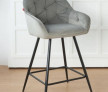 Scaun de bar gri din catifea, cu design modern și confortabil. Picioare negre metalice asigură stabilitate. Un accesoriu elegant și practic pentru bucătărie sau living.
