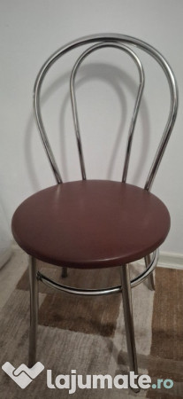 Scaune de bucătărie din crom, în stare de utilizare. Sunt în număr de 4 și au un aspect robust și elegant. Pot fi folosite în bucătărie sau în alte spații ale casei.