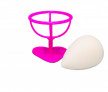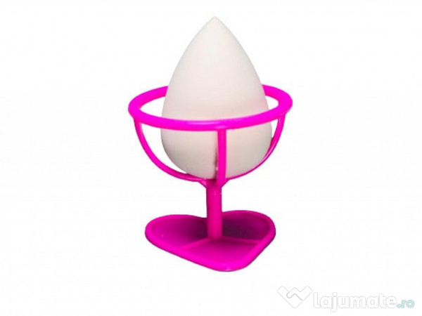 Setul contine burete in forma de lacrima alb si suportul pentru acesta este roz.
