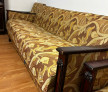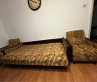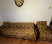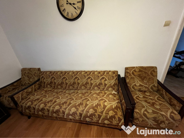 Setul este într-o stare bună, cu structură solidă, ideal pentru living, cameră de oaspeți sau casă de vacanță. Tapițeria are un model clasic. Mobilierul este confortabil și bine întreținut.