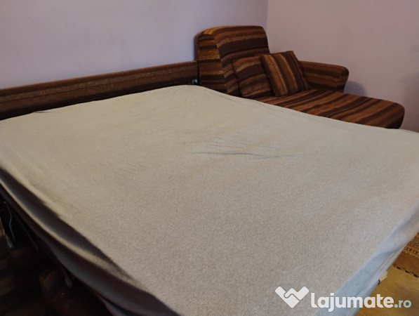 ???? Canapea 4 locuri, extensibilă cu colț bilateral. Sezut si spatar din arcuri si burete, tapitata cu material textil .