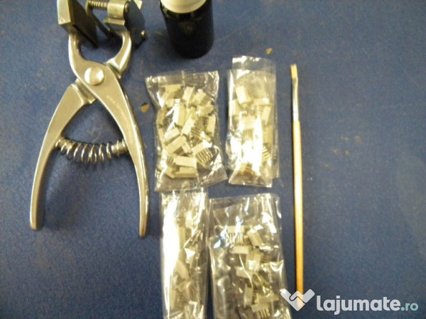 Acest cleşte se poate folosi şi la tatuarea altor animale. Discomfortul creat animalului prin tatuaj este de scurtă durată. Simplu de utilizat, acest cleşte permite tatuarea a 5 cifre sau litere simultan!Ssetul conţine următoarele elemente: