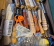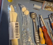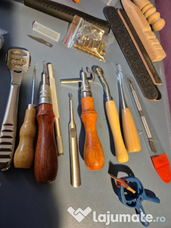 Setul de unelte pentru prelucrarea pielii (set de unelte pentru lucrul cu piele) conține o varietate de instrumente necesare pentru activități de lucru manual cu piele, cum ar fi cuțite, ciocane, pile și alte accesorii. Aceste unelte sunt ideale pentru meșteșugari, designeri și pasionați de prelucrarea pielii. Acest tip de set este folosit pentru a crea, decora si repara diverse obiecte din piele (curele, portofele, genti)