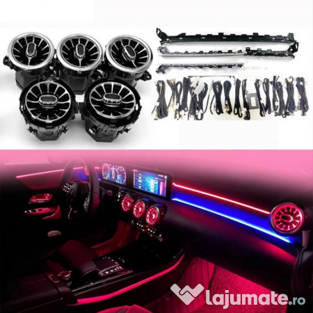 Modernizează interiorul Mercedes Clasa A (W177) cu acest set de ventilație LED. Proiectat pentru a oferi o experiență vizuală unică, acest accesoriu adaugă un detaliu modern și funcțional, îmbunătățind estetica și confortul vehiculului.