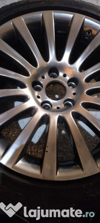 vând set jante BMW serie 7 F01/F02, model style 235 Austria, doua dimensiuni, fata 245/45/19, spate 275/40/19, stare noua, nezgariate/nelovite/rotunde, echilibrate, rulate un sezon. Anvelopele sunt runflat Pirelli Sotto Zero3, iar jantele au capacele originale BMW și senzorii aferenți. Janta fata prezintă două ciupituri pe una dintre spițe, se vede in poza
