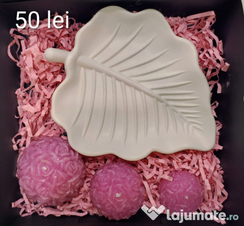 Setul elegant de lumânări parfumate și suportul pentru Ziua Îndrăgostiților, în nuanțe de roz/verde, reprezintă un cadou deosebit pentru a sărbători momentele speciale împreună. Decorațiunile florale aduc un plus de frumusețe și aromă în orice spațiu.