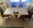 Masă “Venetia” solidă din lemn, de culoare stejar, dimensiuni L/H/A 135/75.5/80 CM. Însoțită de 4 scaune “Cancan” din piele ecologica de culoare maro inchis, dimensiuni L/H/A 46/97/56 CM. Un set de mobilier achizitionat de la XXXLutz, acum nu mai este la ei in oferta (poza din aplicatie cu achizitia). Pretul este usor negociabil, ridicare din Domnesti, Ilfov.