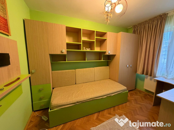 Vând set complet de mobilier pentru dormitor, ideal pentru camera unui copil sau adolescent. Setul este realizat din PAL, într-o combinație plăcută de culori (lemn deschis și verde), fiind o soluție practică și spațioasă.