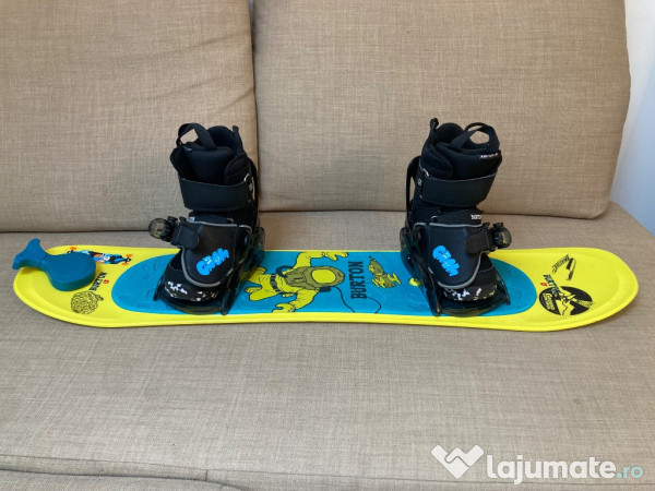 Riglet Burton + legături Burton Grom + boots Burton marimea 27-28, perfect pentru primele alunecări pe zăpadă sau antrenamente pe covor:)