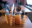 Design: Modern și practic, datorită sistemului de prindere pe suport care menține tacâmurile grupate și la îndemână.