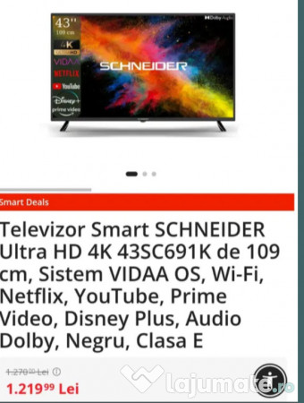 Smart TV Schneider 4k 109 cm, garanție 2 ani