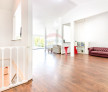 La etaj, spațiul de zi atinge o dimensiune impresionantă de peste 70 mp, rezultat al includerii terasei originale în zona de living. Această suprafață generoasă oferă libertatea de a organiza locul în funcție de preferințe – fie ca un living amplu și elegant, fie ca zonă multifuncțională pentru relaxare și activități variate. În continuarea livingului, a fost adaugată o terasă suplimentară de 30 mp, un alt spațiu deschis pentru momente de relaxare în aer liber. Terasa beneficiază de o scară exterioară care permite accesul direct către curtea din spate, creând o legătură armonioasă între etaj și spațiul exterior.