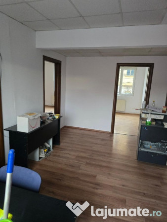 Dau spre inchiriere Spatiu Birou , etaj 1 , - tot etajul , in zona Ultracentrala -Primarie , SC-120 mp , compus din 5 birouri , baie , chicineta , parchetat , terasa proprie , imediat ocupabil . Amplasarea este ultracentrala , aproape de mijloace de transport in comun , Primarie , Piata Unirii , etaj complet de cladire , bun si pentru cabinete , firme , etc . Pret 1500 E luna neg