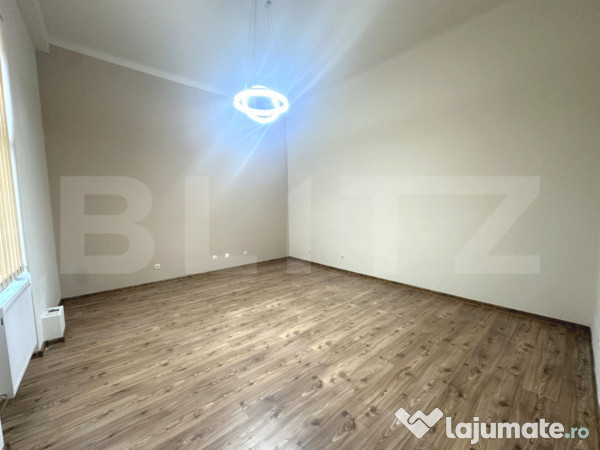 Blitz vă oferă spre vânzare un apartament finisat cu mult gust pregătit pentru a deveni noul birou al afacerii dumneavoastră, sau eventual o investiție în care apartamentul să fie închiriat în regim hotelier. Spațiul este compus din 2 camere decomandate, o baie în afara acestora, și un spațiu de bucătărie. Toate acestea sunt desfășurate pe 52mp utili. El se predă finisat, exact așa cum se observă în fotografii, și la pachet cu apartamentul veți primi bonus un loc de parcare în curtea palatului, și un spațiu de depozitare în demisol de 6mp.