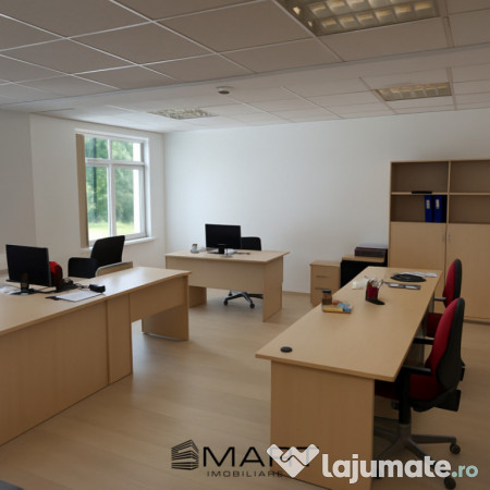 Smart Imobiliare va propune spre închiriere un spațiu de birouri cu suprafața de 110 mp, compartimentat eficient în: sală de conferințe, birou individual/managerial, open-space pentru birouri comune, chicinetă și grupuri sanitare. Spațiul este luminos, bine întreținut și oferă atât zone comune de lucru, cât și încăperi dedicate pentru întâlniri sau activități ce necesită intimitate și concentrare.
