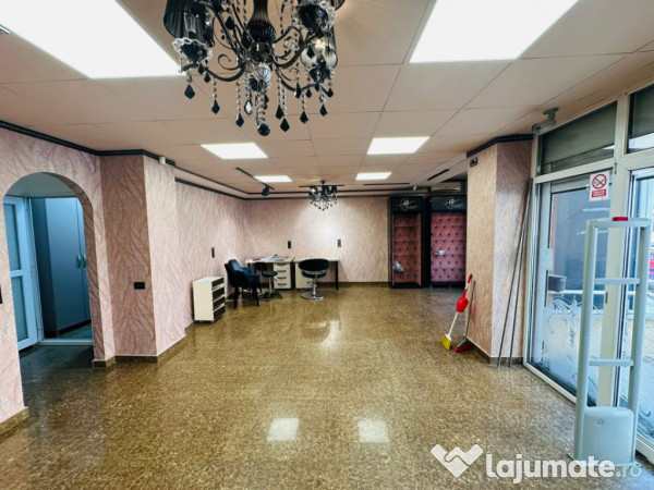Spatiul este situat pe 2 nivele, parter si demisol, avand scara interioara,la parter fiind o camera de 50mp unde erau scaunele de frizerie si coafor, 2 scafe pentru spalat, receptia clienti, pe acelasi etaj fiind grupul sanitar,vestiarul si un hol. La demisol se afla o camera unde exista un solar ERGOLINE VERTICAL, ce poate fi folosit gratuit si alte 3 camere ce pot fi folosite ca si cosmetica, masaj, epilare definitiva, apoi mai sunt 2 spatii unde erau folosite pentru 2 posturi unghii tehnice si 2 posturi mani-pedi. Bineînțeles spațiul poate fi închiriat și pentru alte domenii de activitate, el fiind gol nemobilat , este ideal pentru o clinică medicală , salon de masaj etc.