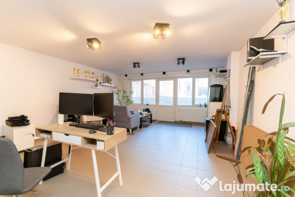 Proprietatea are acces directdin strada, ceea ce o face ideala pentru activitati comerciale, birouri, cobinete, salon etc. Prima camera, foarte luminoasa si spatioasa beneficiaza de lumina naturala, din aceasta se face trecerea catre a doua incapere de 21 mp, care poate servi ca si birou, bucatarie, spatiu de depozitare etc....